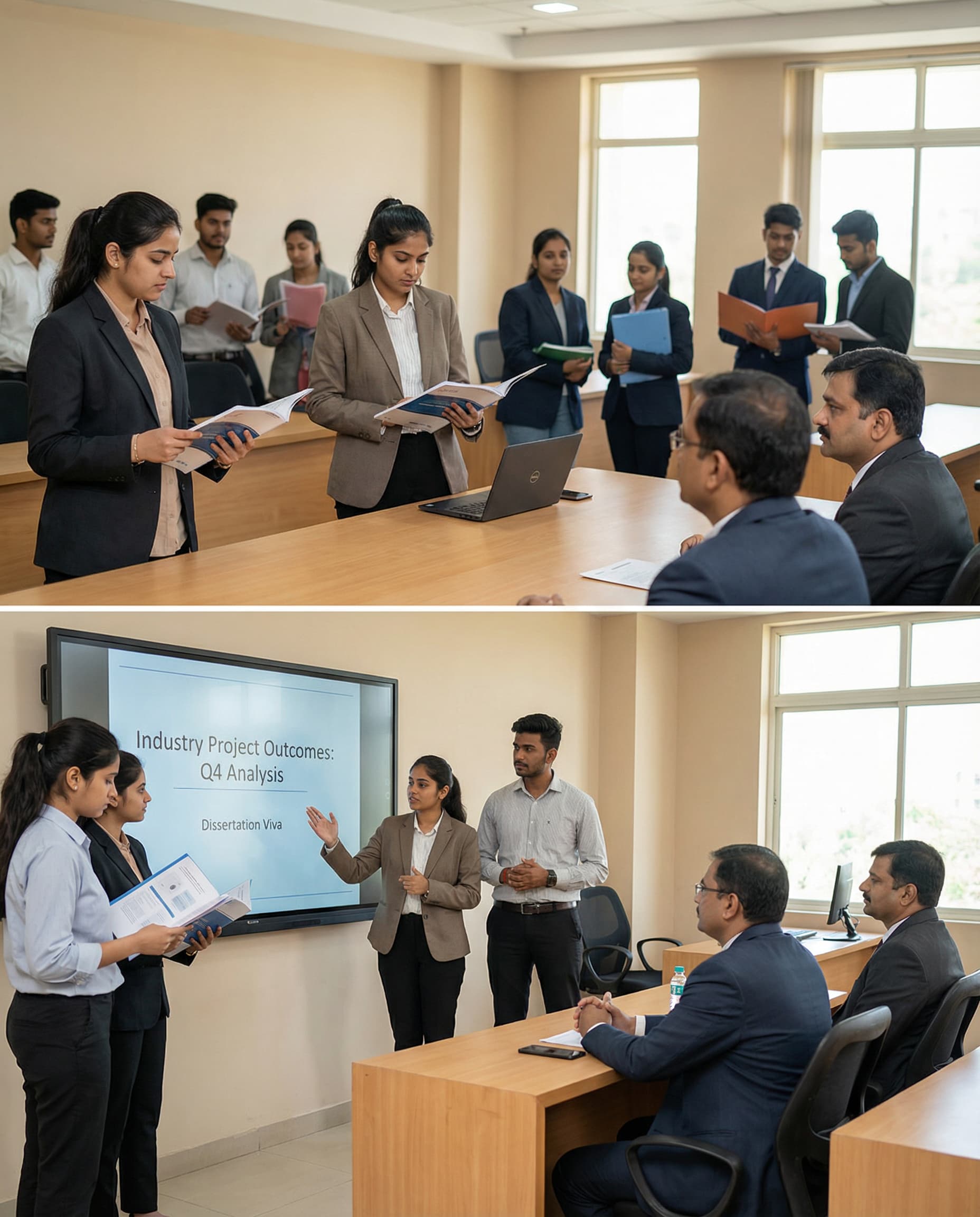 Real outcomes: Internship/Industry Project; Major Project/Dissertation + Seminar/Viva.